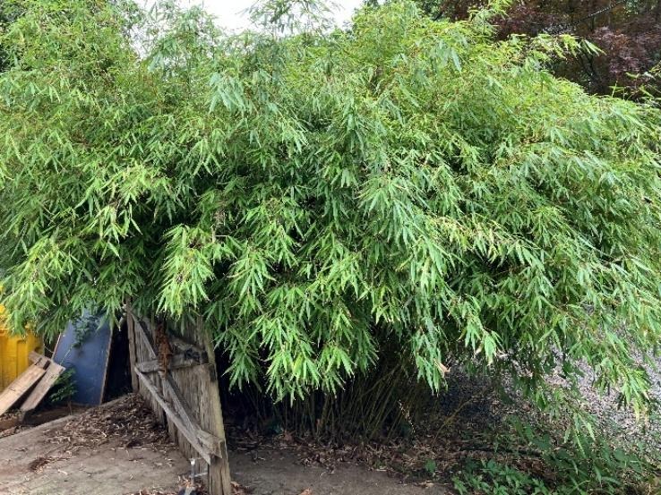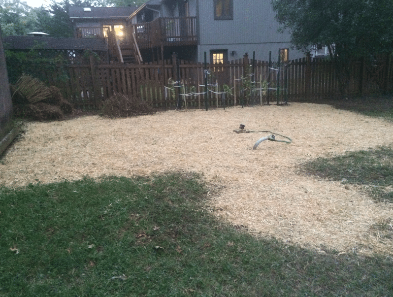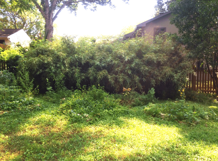 Bamboo and wooden fence replaced with a nascent “living fence” and rain garden: